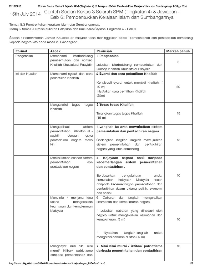 Contoh Soalan Kertas 3 Sejarah Spm Tingkatan 4 Jawapan Bab 6 Pembentukkan Kerajaan Islam Dan Sumbangannya Cikgu Kini Pdf